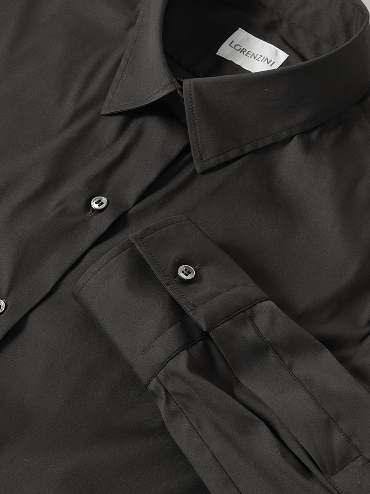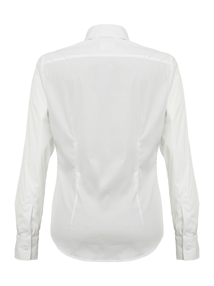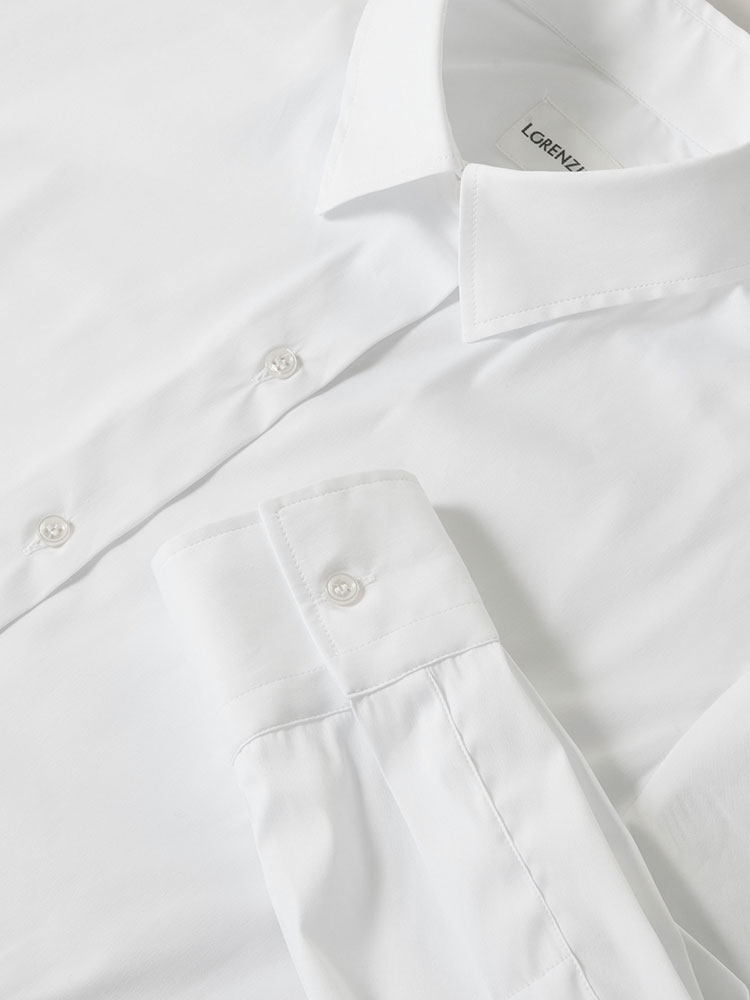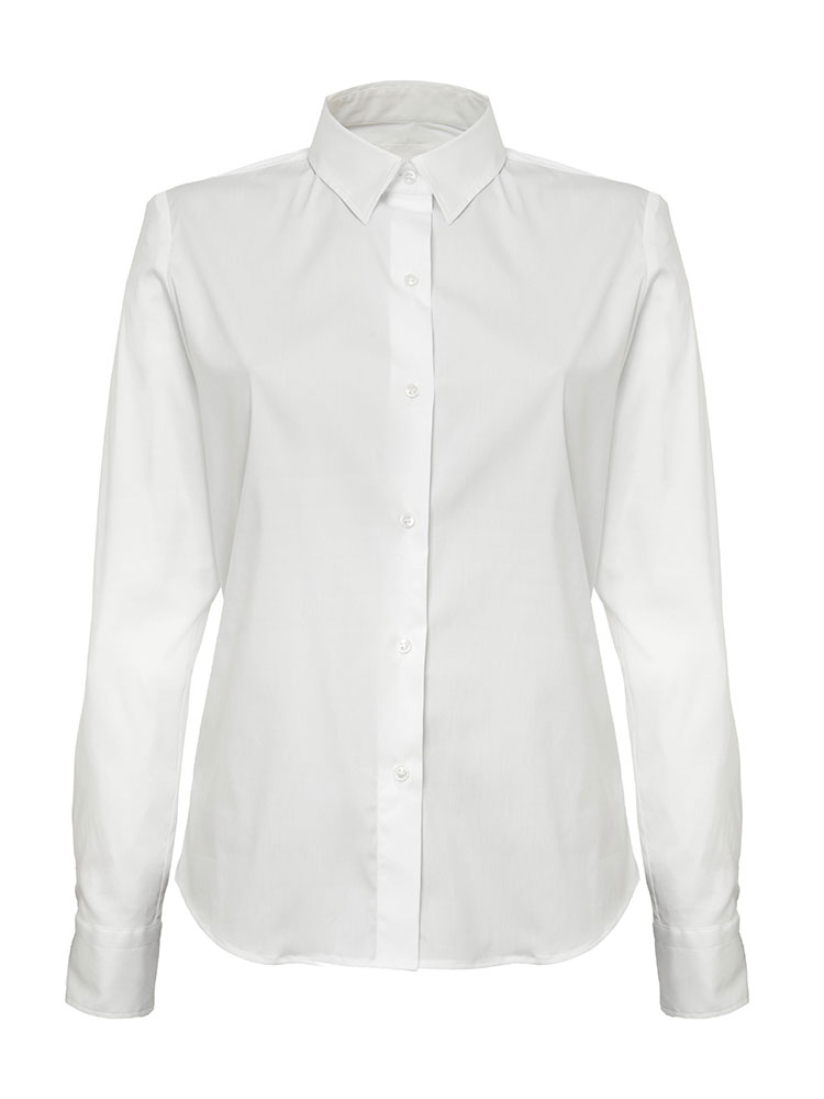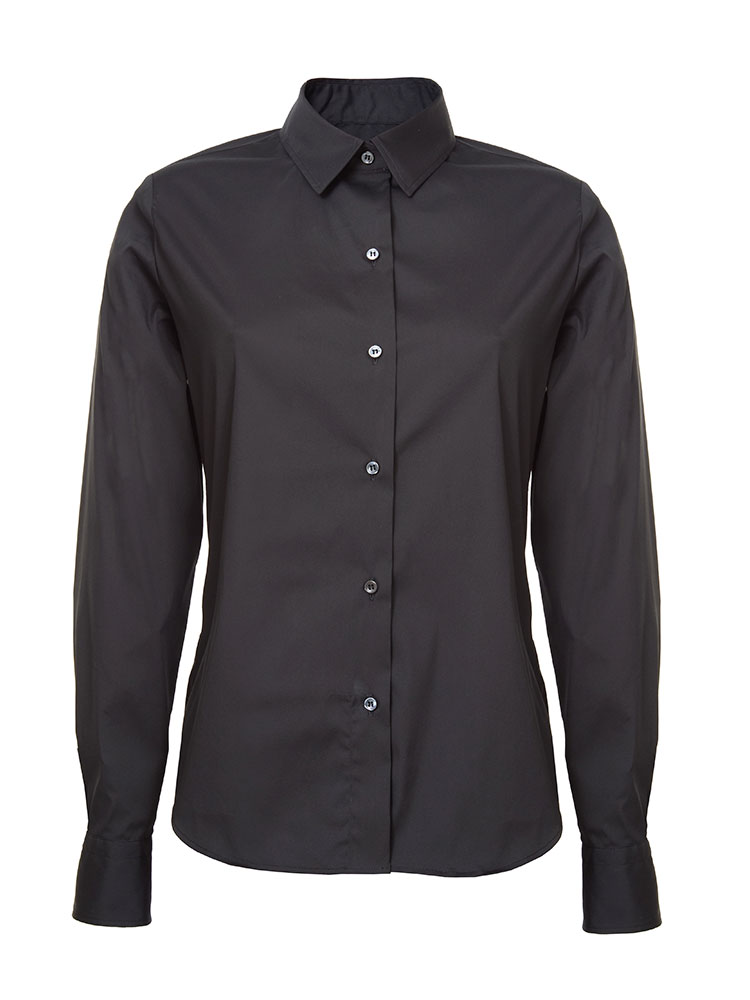 Basic shirt in fine cotton poplin stretch, a staple item suited for every day’s use. Available in blue, black and white.